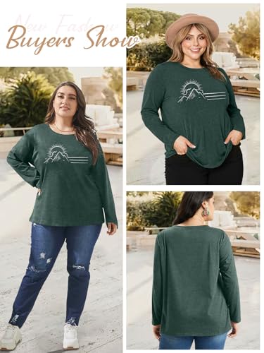 MK Shop Limited Womens Plus Size Tops Cute Graphic Vintage Sunrise Sunset Print Long Sleeve Natura Tees Fall O Neck Shirts 5