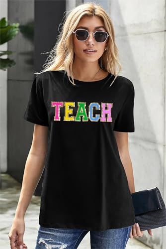 • ✏️ Features: Tie-dye teacher t shirt, unique patch teacher graphic tee tops, inspirational teacher shirt, back to school teacher t-shirt, teach teacher letter print tshirts, first grade teacher shirt, 1st grade teacher shirt, short sleeve, crew neck, teacher gift top, casual style. The classic teacher letter style with tie-dye & patch design makes you look very cute and gentle.