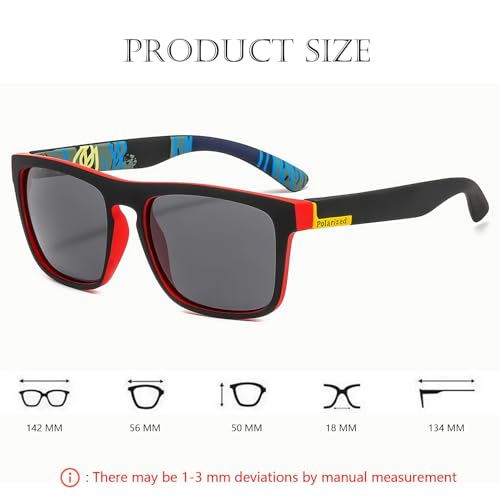 • 【Product Size】Lens Width: 56 MM (2.2 inches) | Lens Height: 50 MM (1.97 inches) | Temple Length: 134 MM (5.28 inches) | Nose Bridge: 18 MM (0.71 inches) | Frame Length: 142 MM (5.59 inches).