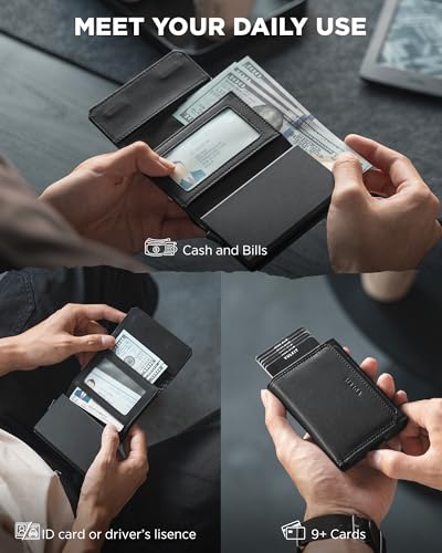 VULKIT Mens Minimalist Wallet RFID Blocking with Pop-Up Card Holder, ID Window and Cash/Bills Slot, Gift Box Packed, Black 7