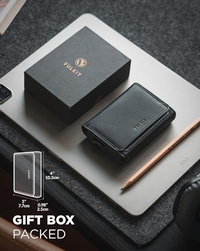 HOT ! VULKIT Mens Minimalist Wallet RFID Blocking with Pop-Up Card Holder, ID Window and Cash/Bills Slot, Gift Box Packed, Black