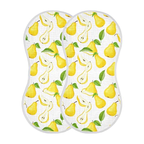J JOYSAY Pear Leaves Fruit Yellow Baby Burp Cloths for Boys Girls Large 22''x11'' Cotton 4 Layer Baby Bibs for Baby Babies one sizex1 2