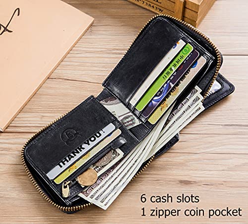 • EXCELLENT CREATIVE DESIGN: This is not only a normal bifold wallet, it is also a short wraparound zipper bifold wallet.Something that frequently take out is convenient to store. And something that easy lose is also security store by zipper,creates the ideal environment for some of your most treasured items.