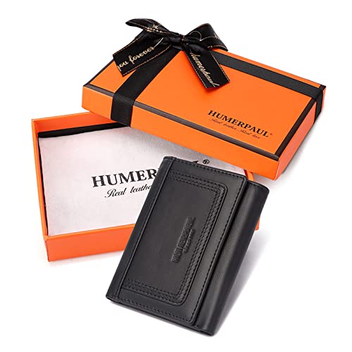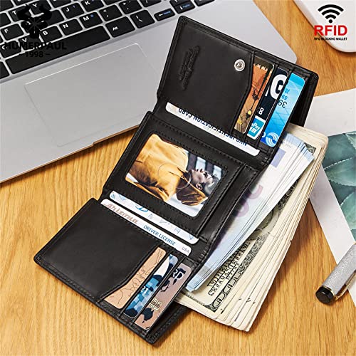 HOT ! Wallet,Wallet for Men,Genuine Leather Wallet for,Men's Premium Genuine Leather Mens Trifold Wallet Blocking Card Holder Wallet Snap Zipper Coin Pocket(Black)