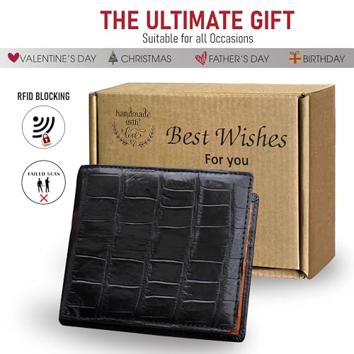 • Effectively Block RFID - HATA leverages technology to block RFID signals used to electronically scan your alligator belly leather bifold wallets as someone passes by unnoticed. This keeps your vital information in driver's license, debit cards and credit cards from being stolen.