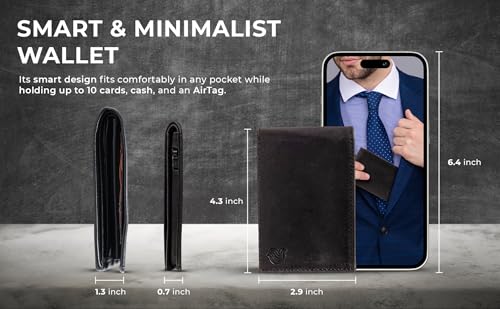 • AIRTAG SLOT: Never lose your wallet again. This leather wallets for men features a hidden AirTag slot, push button card ejector, and RFID blocking. A smart wallet with pop up card holder and sleek mechanical design.
