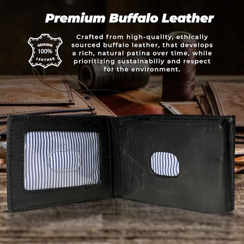 • PREMIUM BUFFALO LEATHER: Crafted from real leather, this mens smart wallet combines rugged durability with refined style. Includes a credit card holder for men and pop up card ejector - perfect mens wallet for gifting or everyday use.
