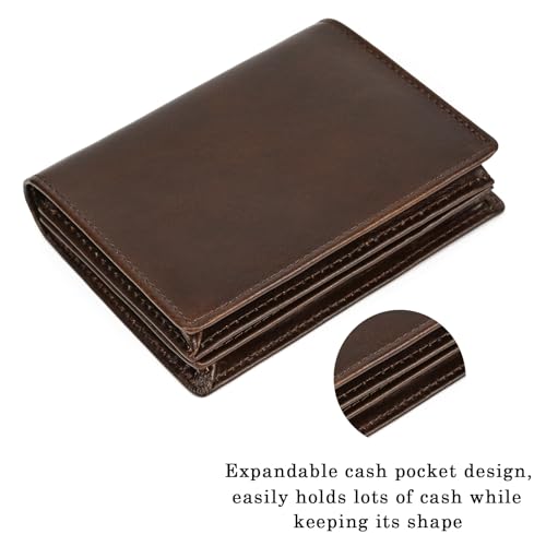 Genuine Leather Wallet for Men | Bifold RFID Vertical Wallet | Mens Extra Large Capacity Card Holder with 16 Slots and ID Window, Coffee 7