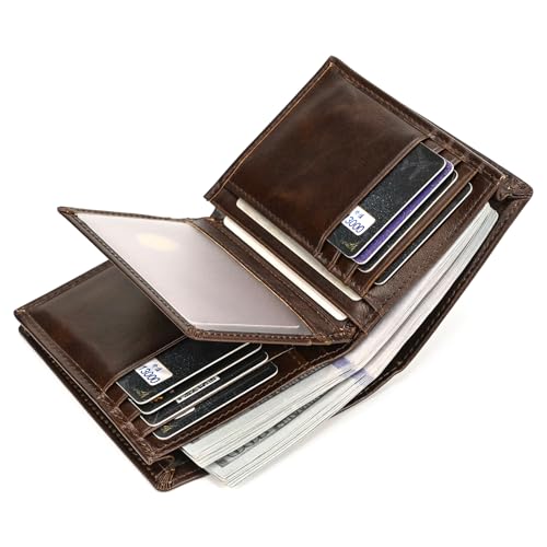 HOT ! Genuine Leather Wallet for Men | Bifold RFID Vertical Wallet | Mens Extra Large Capacity Card Holder with 16 Slots and ID Window, Coffee
