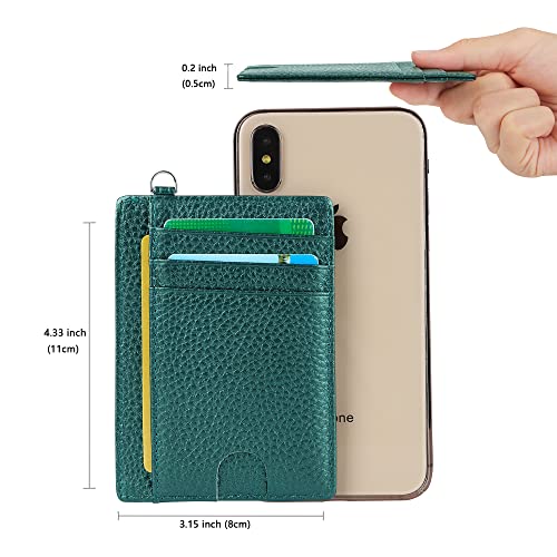 HOT ! Women & Men Genuine Leather RFID Blocking Card Holder Thin Slim Minimalist Front Pocket Wallet with Keychain, Dark Green
