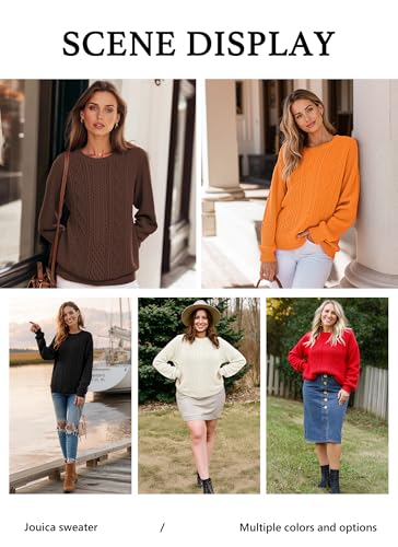 HOT ! Jouica Women's Cable Knit Crewneck Sweaters Casual Long Sleeve Lightweight Ribbed Pullover Fall Outfits for Women 2025