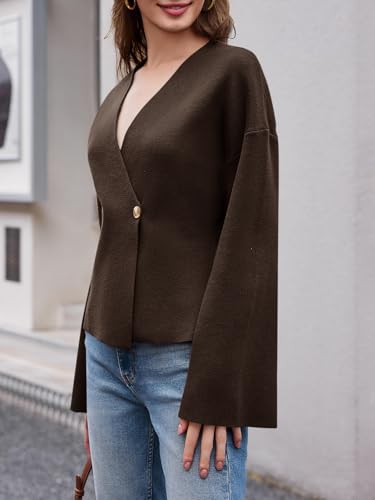 HOT ! Saodimallsu Womens V Neck Cardigans Long Bell Sleeve Button Down Open Front Loose Knit Fall Sweater Blazer
