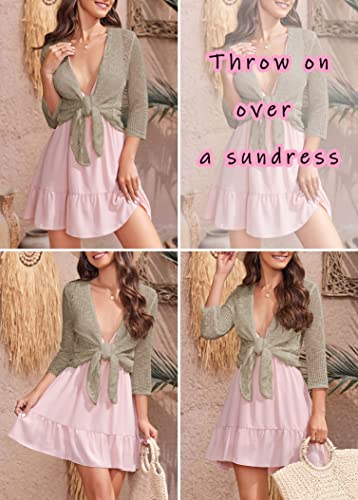 Nulibenna Womens Sheer Shrug Sweaters 3/4 Sleeve Open Front Tie Cardigan Bolero Jacket Lightweight Crochet Knit Cover Up Tops 5