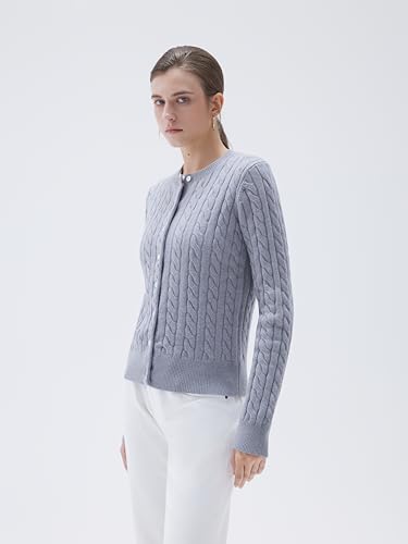 SUUKSESS Women Cable Knit Cashmere Sweaters Crew Neck Button Up Chunky Cardigan Long Sleeve Fall Outfits 4