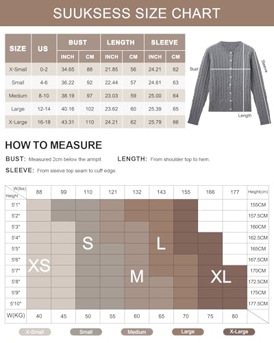 HOT ! SUUKSESS Women Cable Knit Cashmere Sweaters Crew Neck Button Up Chunky Cardigan Long Sleeve Fall Outfits