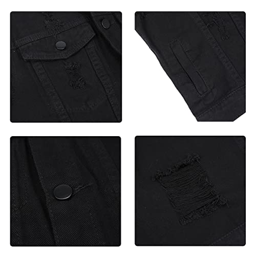 Iynnijoy Men's Denim Vest Destroyed Sleeveless Casual Cowboy Slim Waistcoat Pockets 4