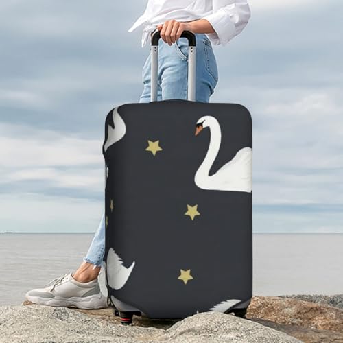 HOT ! White Swans On A Black Starry Background Luggage Cover, Protective Washable Suitcase Cover - Travel High Elastic Fibers Suitcase Protector Fits Medium