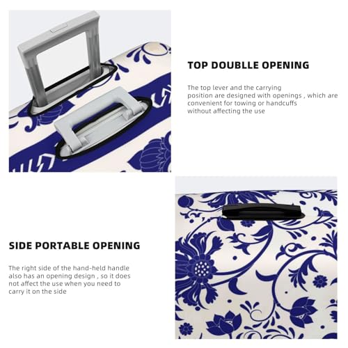 Blue And White Porcelain Pattern Luggage Cover TSA Approved Stylish Dust and Scratch Resistant Luggage Case Protector Washable Elasticated Luggage Covers for Kids and Adults 5
