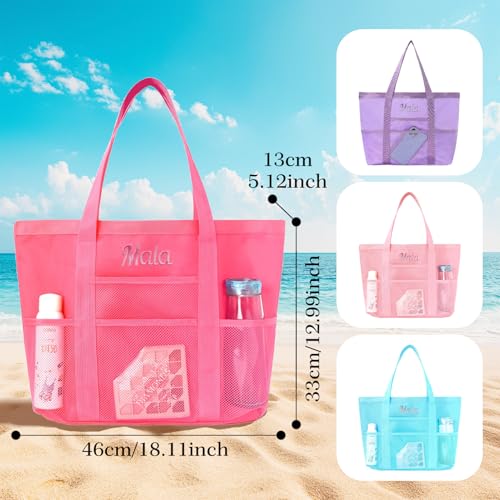 Personalized Pink Beach Bag with Embroidered Name,Foldable Travel Tote,Custom Tote Bag Travel Essential 7