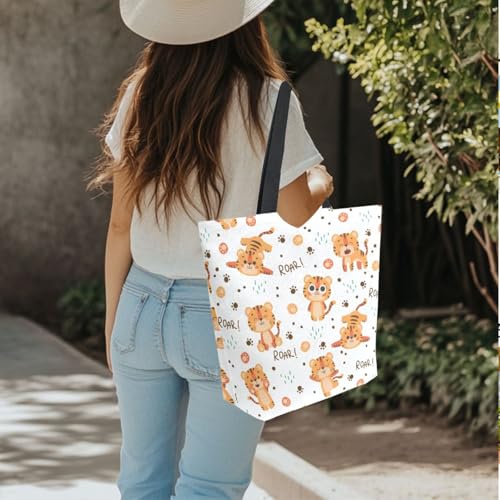 • 🌸Aesthetic Double-Sided Printed: This front and back printing canvas tote bags are designed with Hand Drawn Adorable Orange Tiger with Roar Quote Patterned . Each of Vuiyean women’s tote handbag are features a beautiful high-definition pattern.