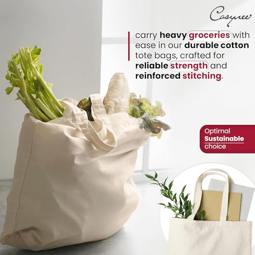• DURABILITY: made of 100% natural cotton, lock stitching inside, with compacted stitching throughout, including cross-stitching at the handles for maximum strength allowing the bag to hold up extra bearing capacity, which are much stronger than our competitors. With two reinforced handles sized convenient to carry in hand or wear on your shoulder, sturdy enough for all kinds of daily use.