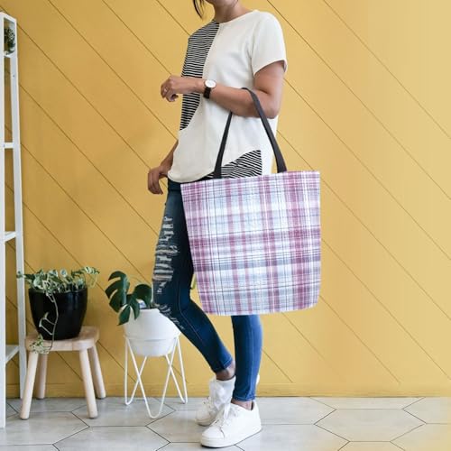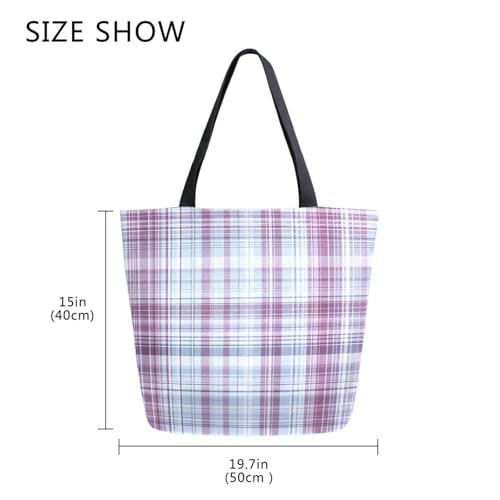 HOT ! Extra Large Shoulder Tote Bag for Beach Travel Weekender Gym Light Purple Blue Plaid Pattern Reusable Grocery Canvas Shopping Bag