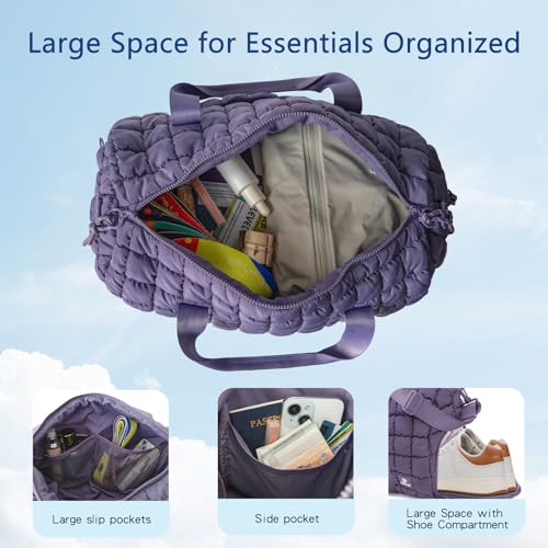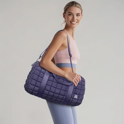 • Quilted Gym Bag:This quilted puffer bag features a spacious main compartment and separate shoe pocket for convenient gym or travel use.Combining fashion and functionality, while easily carrying all essential items.Dimensions:18.5×8.26×16.75 inches.Suitable for gym bag, gym sport bag, duffle bag, travel duffel bag, travel holdall bag, gym holdall, overnight bag, weekender bag, travel bag