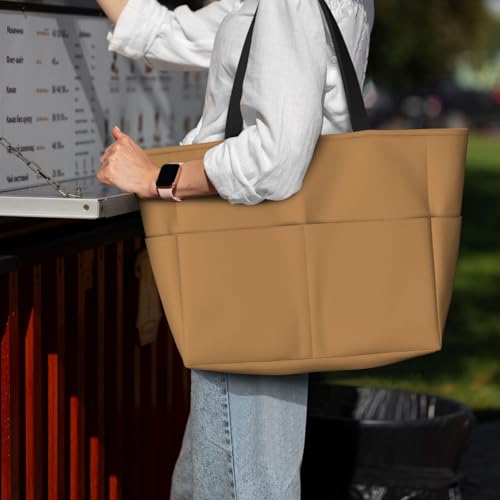 Large Capacity Beach Bag - print Waterproof Travel Bag Solid color brown Multi-Pocket Tote for Vacation Gym Women 5