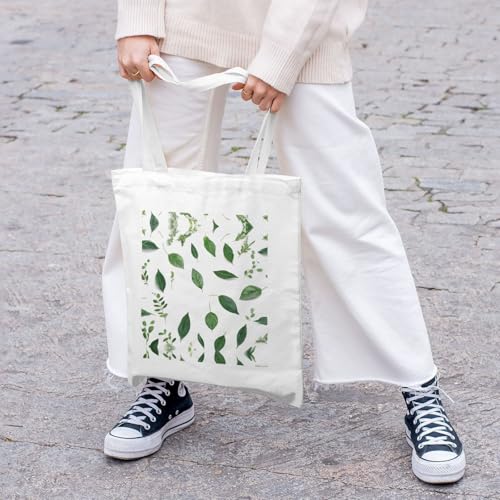 HOT ! Eucalyptus Leaves Print Canvas Shopping Bag Reusable Eco-Friendly Handbag With Large Capacity For Everyday Use