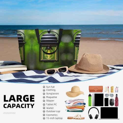 HOT ! Firefly And Lantern Large Beach Tote Bag Women Beach Tote Bag For Pool Gym Grocery Travel With Multiple Pocket