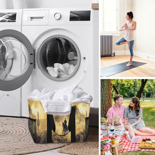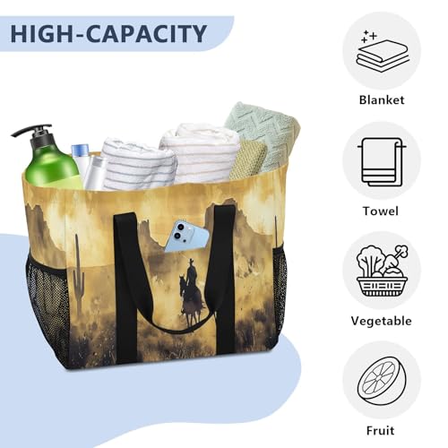 YETTASBIN Vintage Cowboy Large Foldable Travel Tote Bag, Lightweight Waterproof Swim Pool Bag with Handles & Pocket for Beach Outdoor, Reusable Grocery Bag for Kitchen, Shopping 4