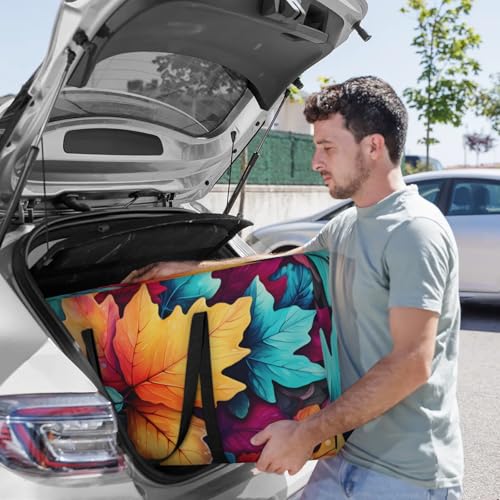 More information about Watercolor Maple Leaves Extra Large Moving Bags Heavy Duty Storage Bags Colorful Leaves Cloth Wrap Around Handles Double Zipper Reusable Convenient Foldable Storage Tote for Travel Camping Space Save