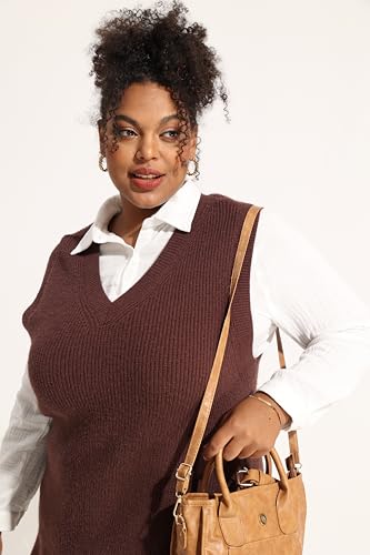 CARCOS Plus Size Sweater Vest for Women Preppy Style V Neck Sleeveless Sweaters Knit Pullover Tank Tops XL-5XL 5