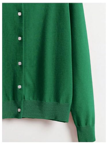 HOT ! OYOANGLE Women's Button Front Lightweight Sweater Tops Crew Neck Elegant Long Sleeve Daily Cardigan