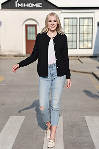 SMILING PINKER Women Cardigan Sweater Crewneck Pearl Button Knitted Tops Medium Weight 2