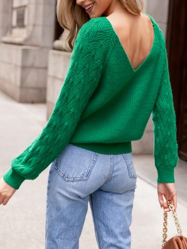CUPSHE Womens V Neck Sweater Long Sleeve 2024 Fall Pullover Knit Sweater Tops 6