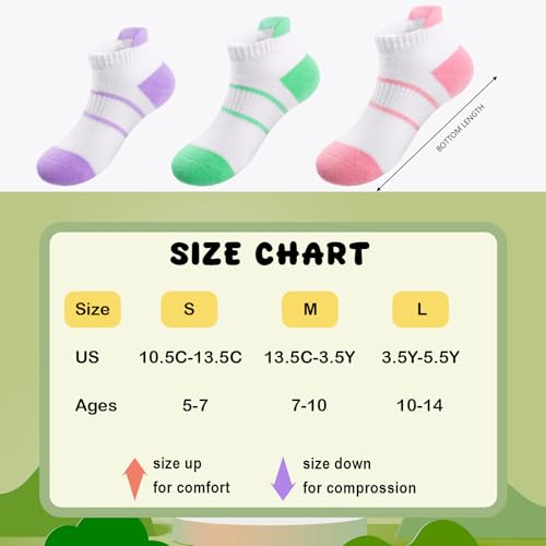 Girls Socks Kids Ankle Athletic Socks With Cushioned Sole for Girls 5-7 7-10 10-14 5