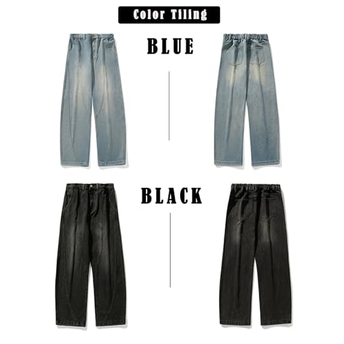 • BAGGY DENIM JEANS -- Men's jeans are reinforced for double the durability, with just the right amount fabric. They are loose-fitting at the waist, hips, and thighs for the most comfortable all-day wear. Hip-hop trendy street jeans with barrel design for a stylish look, featuring a 90's vintage trend design, loose fit, and comfortable fabric.