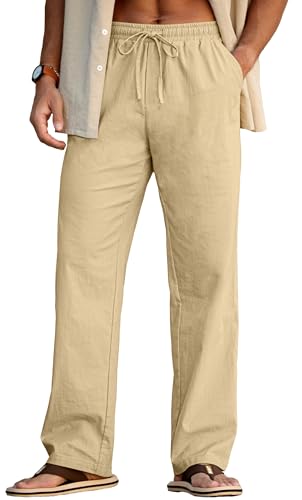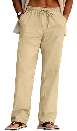 Sailwind Men's Casual Linen Pants Beach Summer Drawstring Elastic Waist Lightweight Pants 6