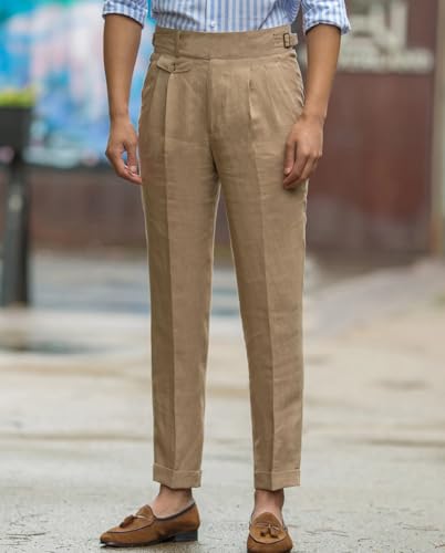 Men's Fit Pants Pockets Slacks Casual Business Slim Lightweight Linen Gurkha Pants 5