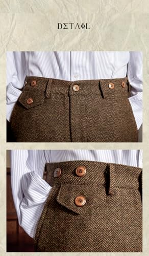 More information about Men's Vintage Wool Herringbone Dress Pants Casual Straight Leg Slacks