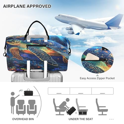 Weekender Bags Travel Duffel Gym Bag Dreamy Two Turtles Carry on Overnight Tote Bag with Toiletry Bag for Airplane Travel Trip Gym Yoga 6