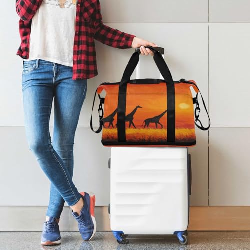 HOT ! Sunset Orange Giraffe Travel Duffel Bag for Women Men Gym Bag with Shoe Compartment Wet Pocket Carry On Weekender Overnight Bags for Travel Weekend Getaway