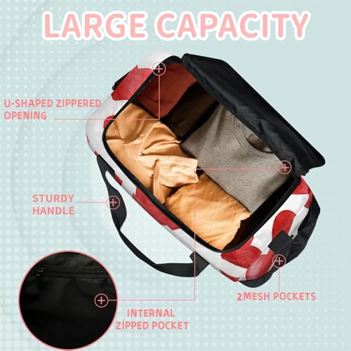 Love Colorful Red Travel Duffel Bag Weekender Overnight Bags for Women Men Foldable Waterproof Tote Bag with Trolley Sleeve 7