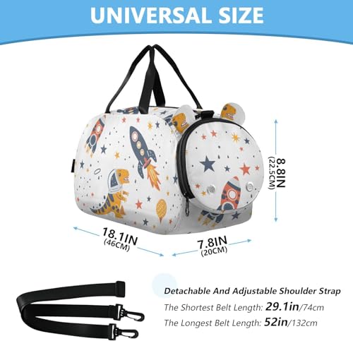 Duffle Bag for Boys or Girls with Shoes Compartment, Space Dinosaur Astronaut Sports Travel Bag Overnight 5