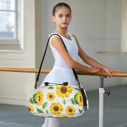 Leaves Flowers White Kids Travel Duffel Bag for Boys Girls Overnight Weekend Tote Bag with Shoes Compartment for Trip Beach Swim 7