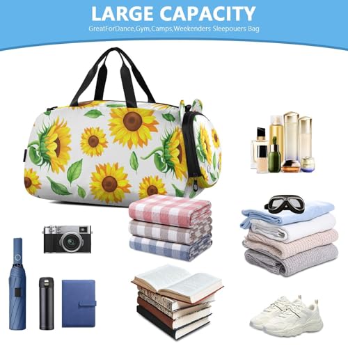 HOT ! Leaves Flowers White Kids Travel Duffel Bag for Boys Girls Overnight Weekend Tote Bag with Shoes Compartment for Trip Beach Swim