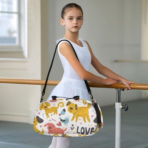 YETTASBIN Sport Travel Duffel Bag for Girls Boys, Cartoon Dog Large Waterproof Weekender Overnight Bag, Detachable Shoulder Strap Gym Bag with Shoe Compartment & Wet Pocket 7