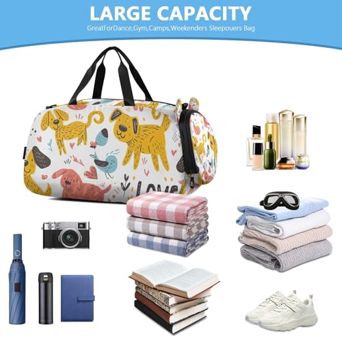 HOT ! YETTASBIN Sport Travel Duffel Bag for Girls Boys, Cartoon Dog Large Waterproof Weekender Overnight Bag, Detachable Shoulder Strap Gym Bag with Shoe Compartment & Wet Pocket