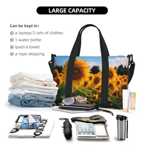 HOT ! Sunflower garden print Gym Bag for Women,Carry on Weekender Overnight Duffle Bag,Personal Item Tote Bag